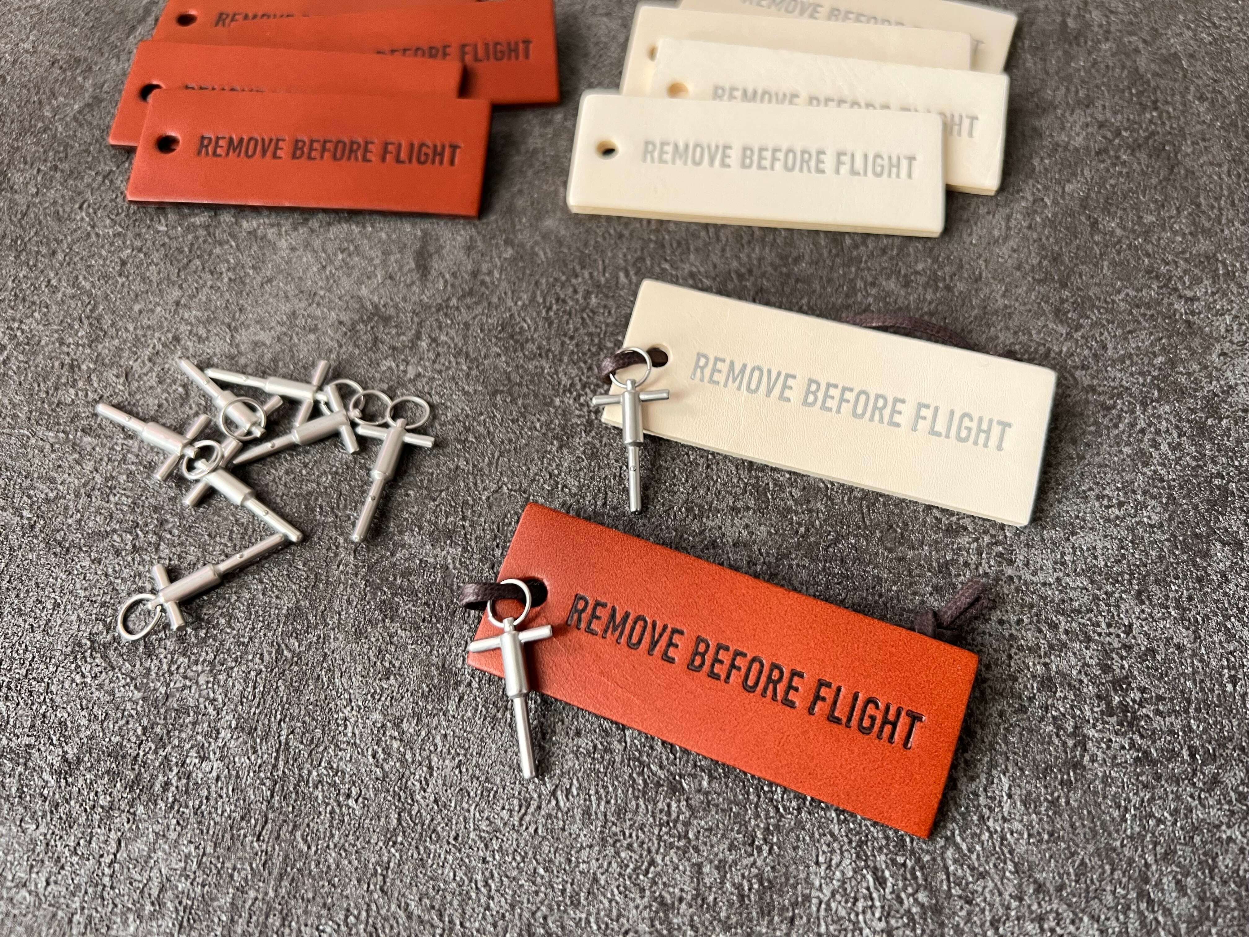 ノーズステアリングロックアウトピン。 航空機が離陸する直前に抜くこのピンは航空の安全のお守りに。 1個1100円