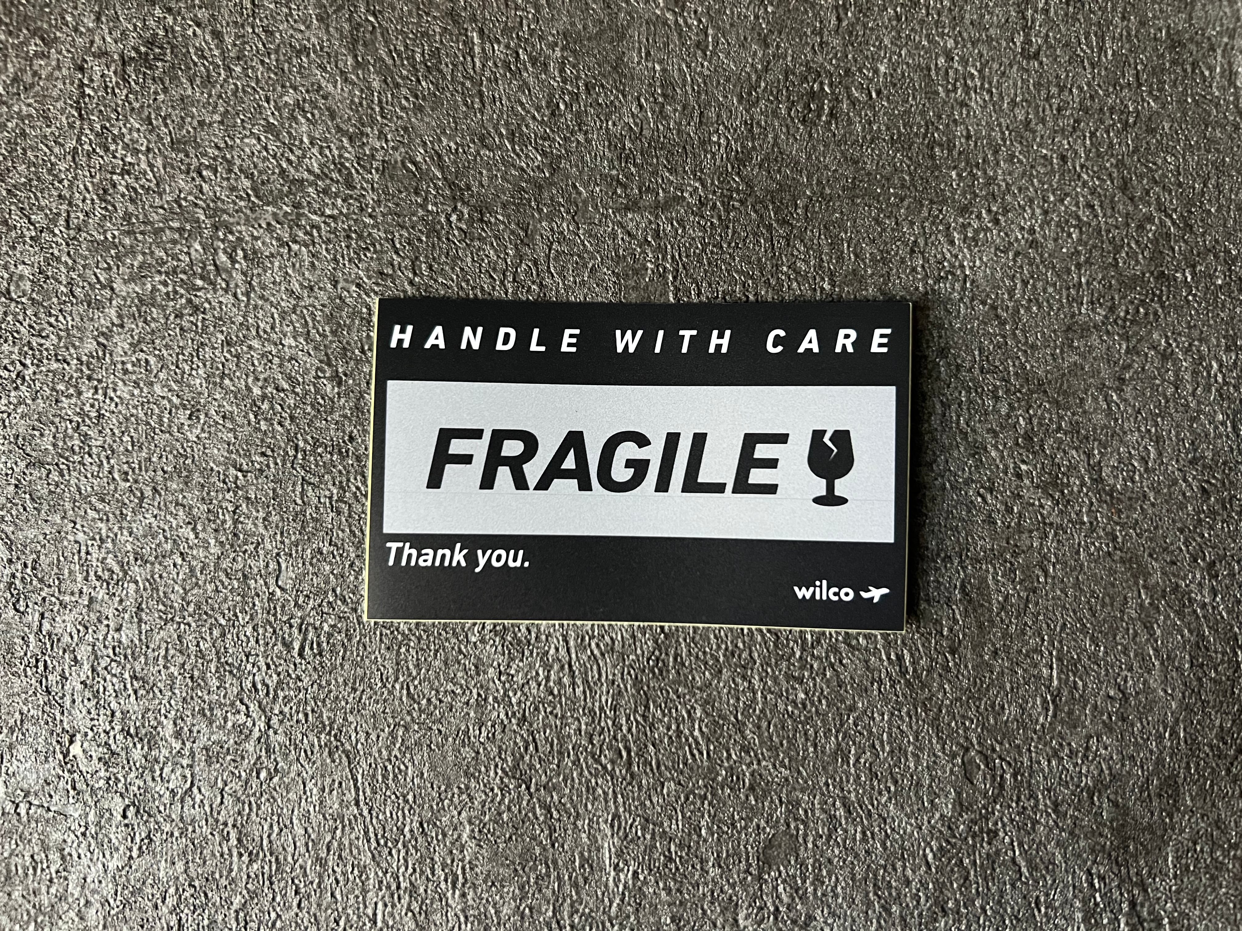 ①FRAGILE 大 約8.5×5cm ※耐水性